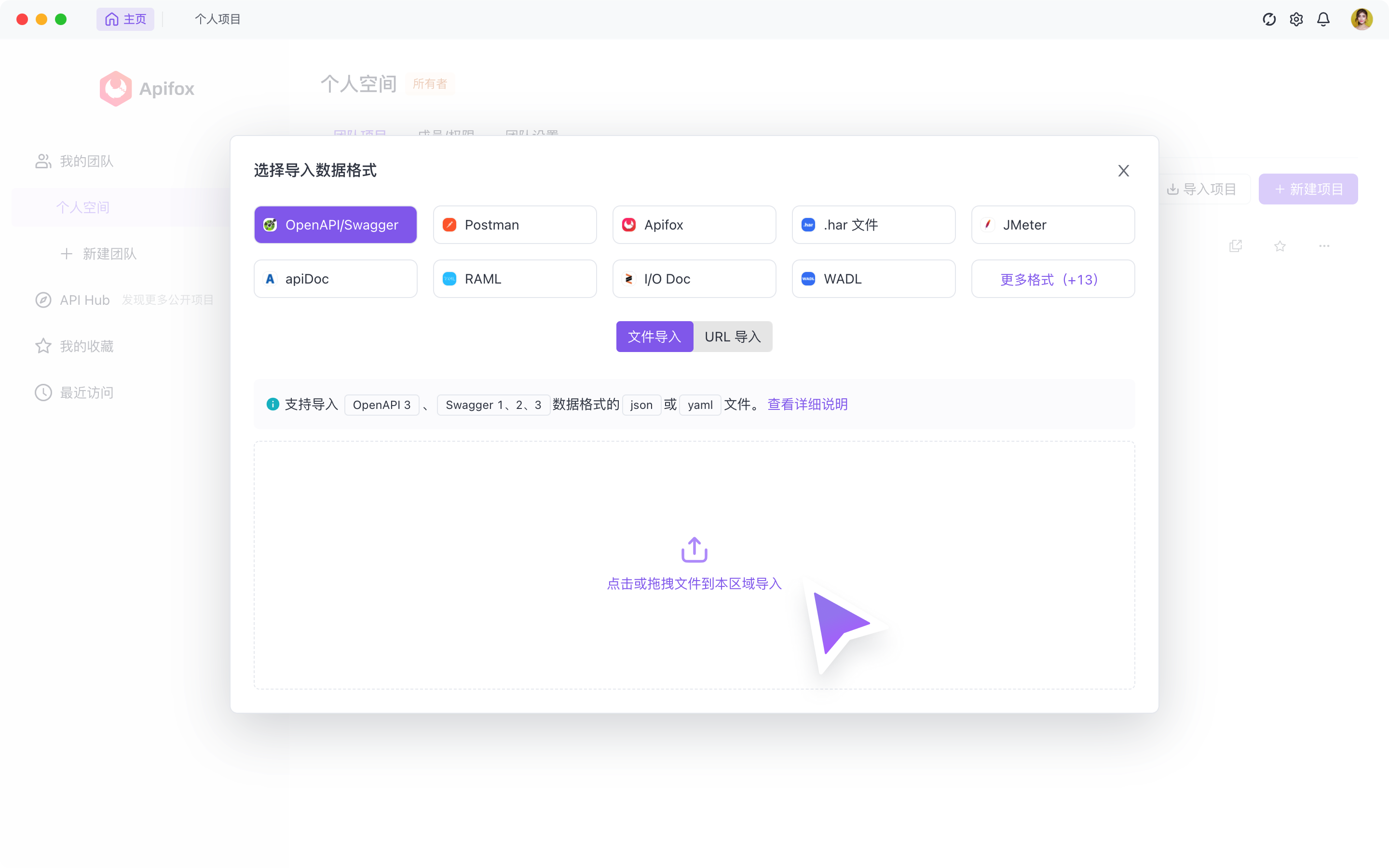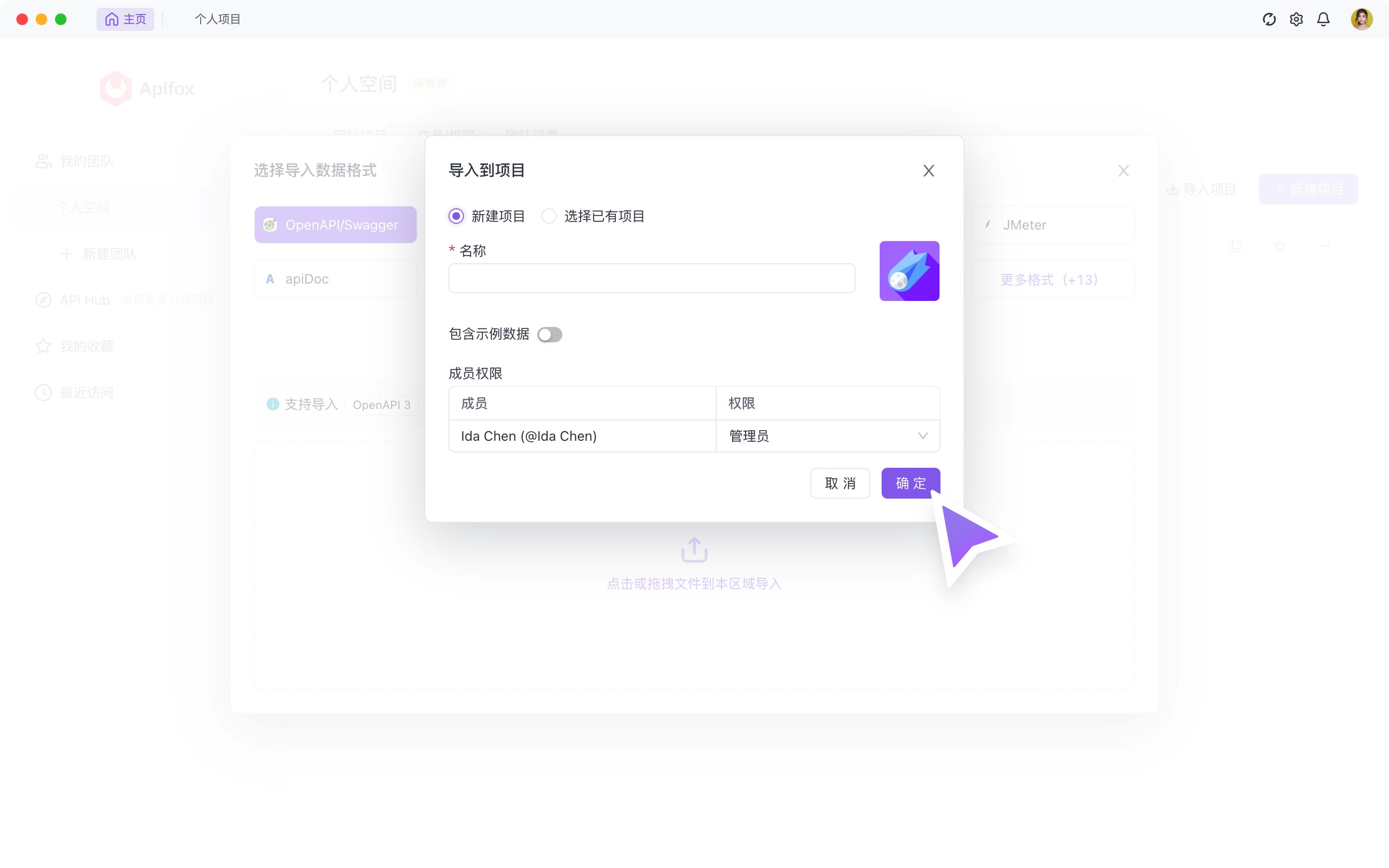 在 2.2.27 版本之后,支持在主界面(项目列表页)快速导入数据。可以选择导入到新项目,或导入到已有项目。