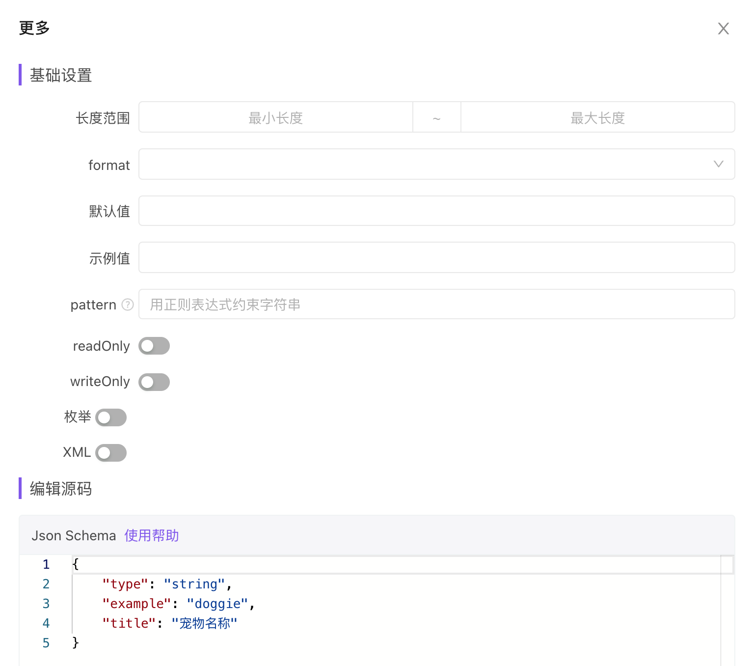 数据字段更多里设置的长度范围、枚举值、Partten、format,也会作为 Mock 规则使用: