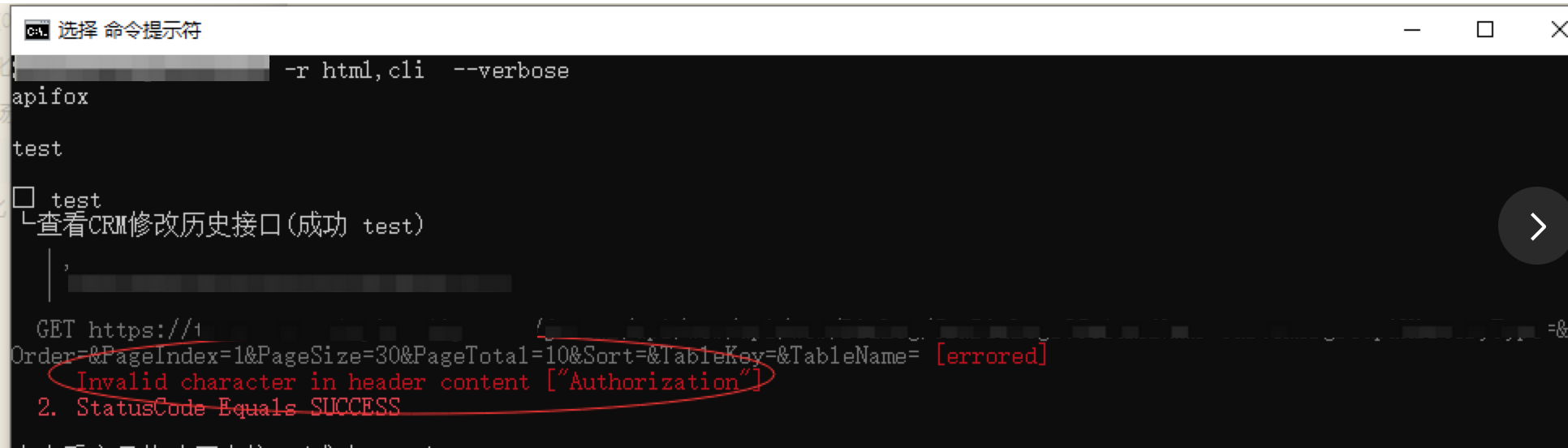 在终端运行 Apifox CLI 命令后出现 Invalid character in header content 错误:
