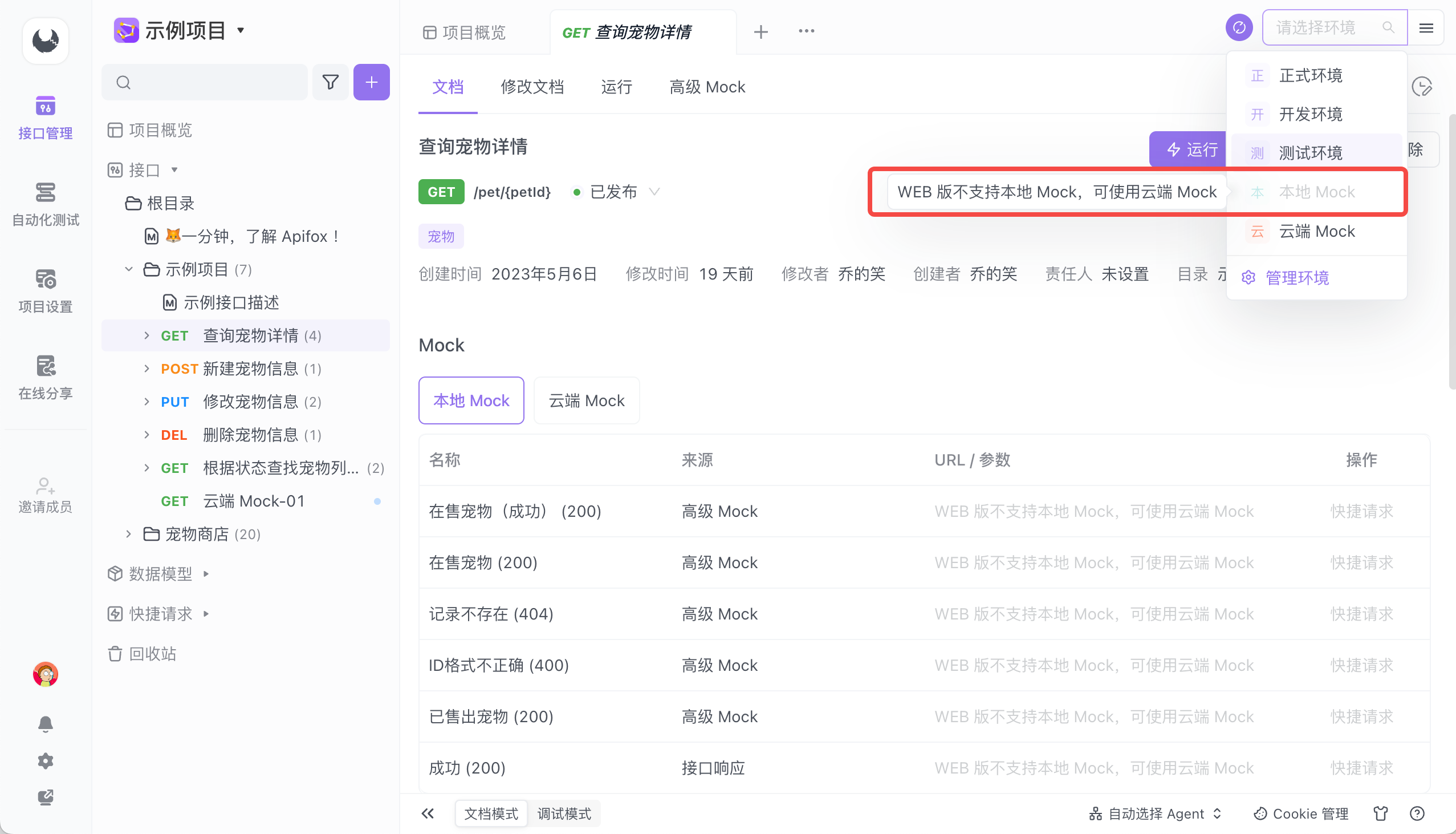 Web 端与客户端在主要流程的使用上没有明显差异,都能够满足团队内的接口协作需求,但以下功能存在差异。