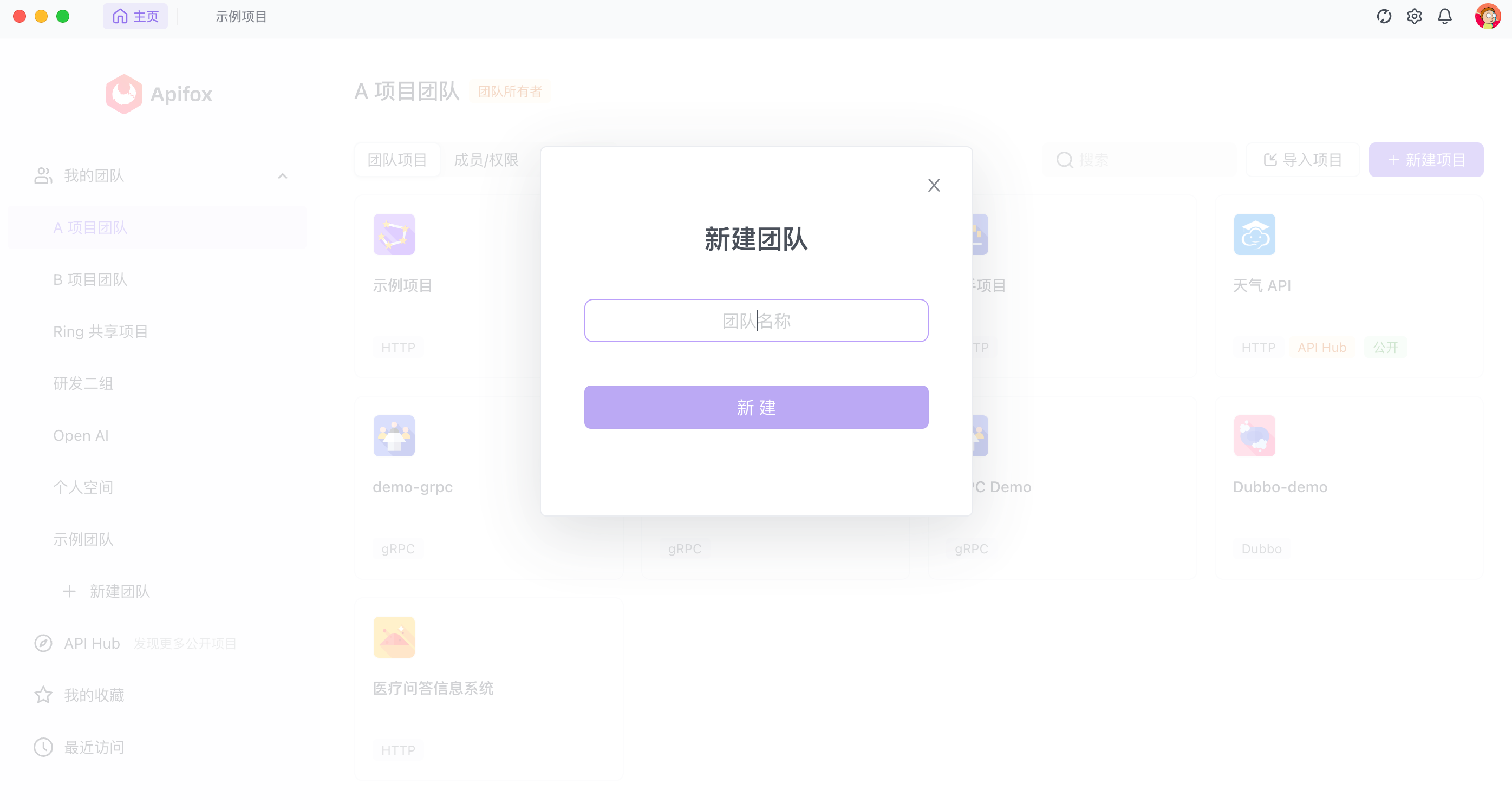 在 Apifox 中,你可以创建多个团队,每个团队可以包含多个成员。要创建一个新团队,可以按照以下步骤操作: