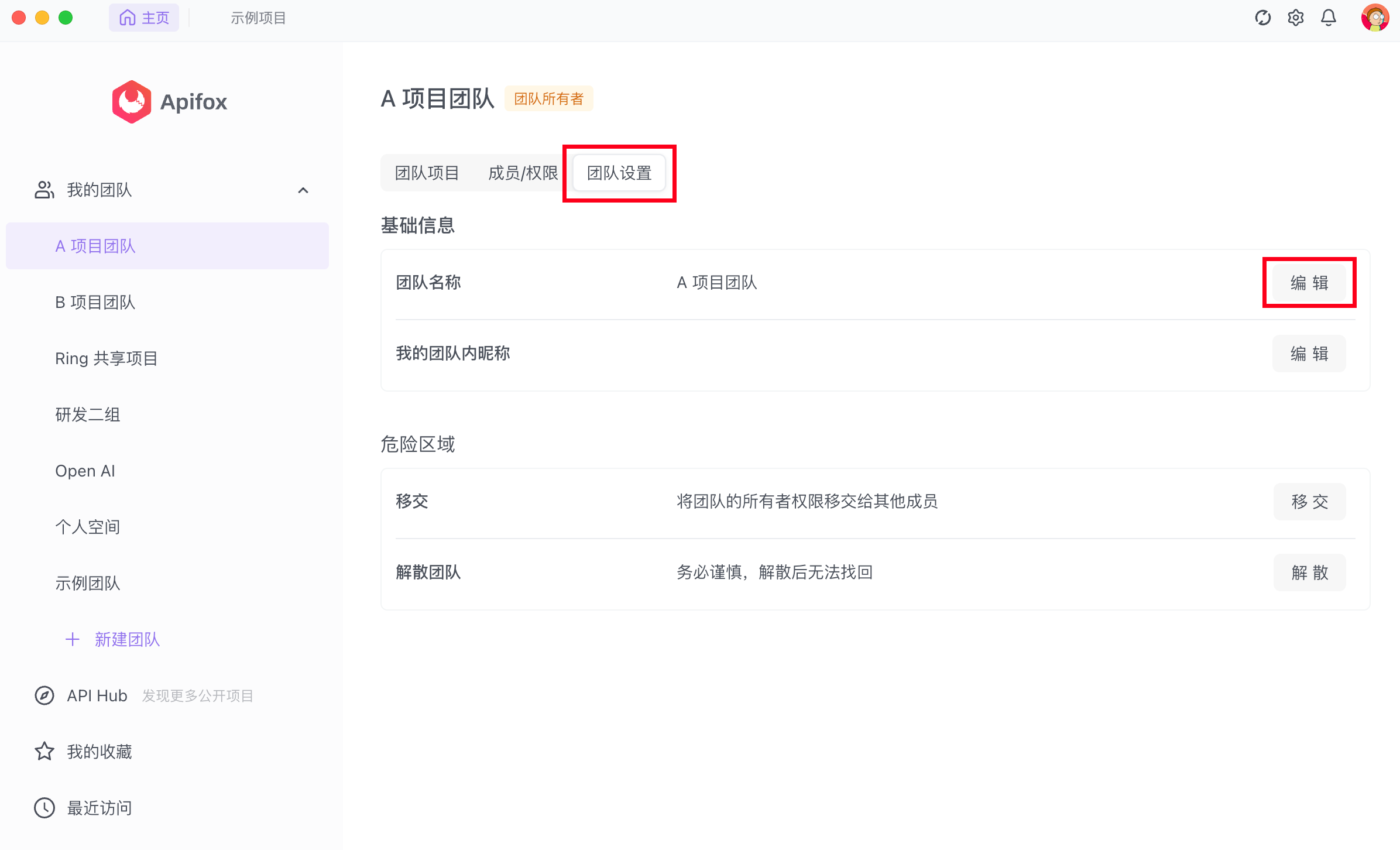 团队所有者(或管理员)可通过「团队设置」->「基础信息」->「编辑」,修改团队名称。